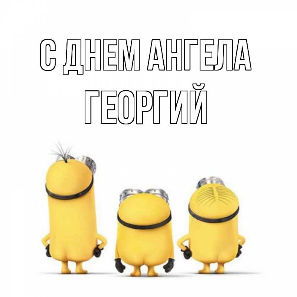 Открытка С днем Ангела Георгий. веселье. миньоны