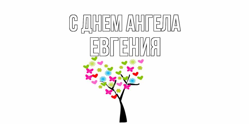 Открытка С днем Ангела Евгения. Дерево с бабочками. Дерево, бабочки