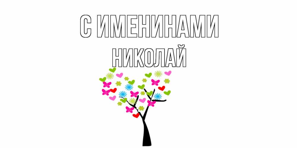 Открытка С именинами Николай. Дерево с бабочками. Дерево, бабочки