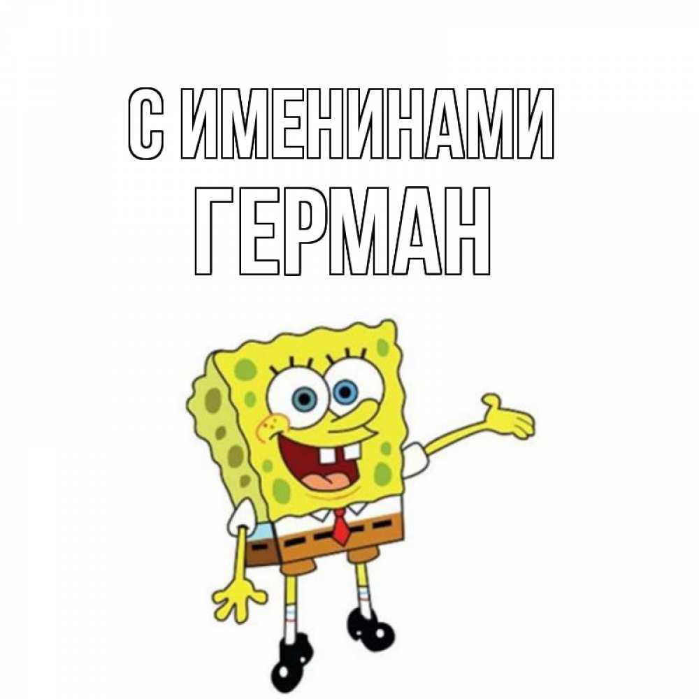Открытка С именинами Герман. спанч Боб машет рукой. веселые