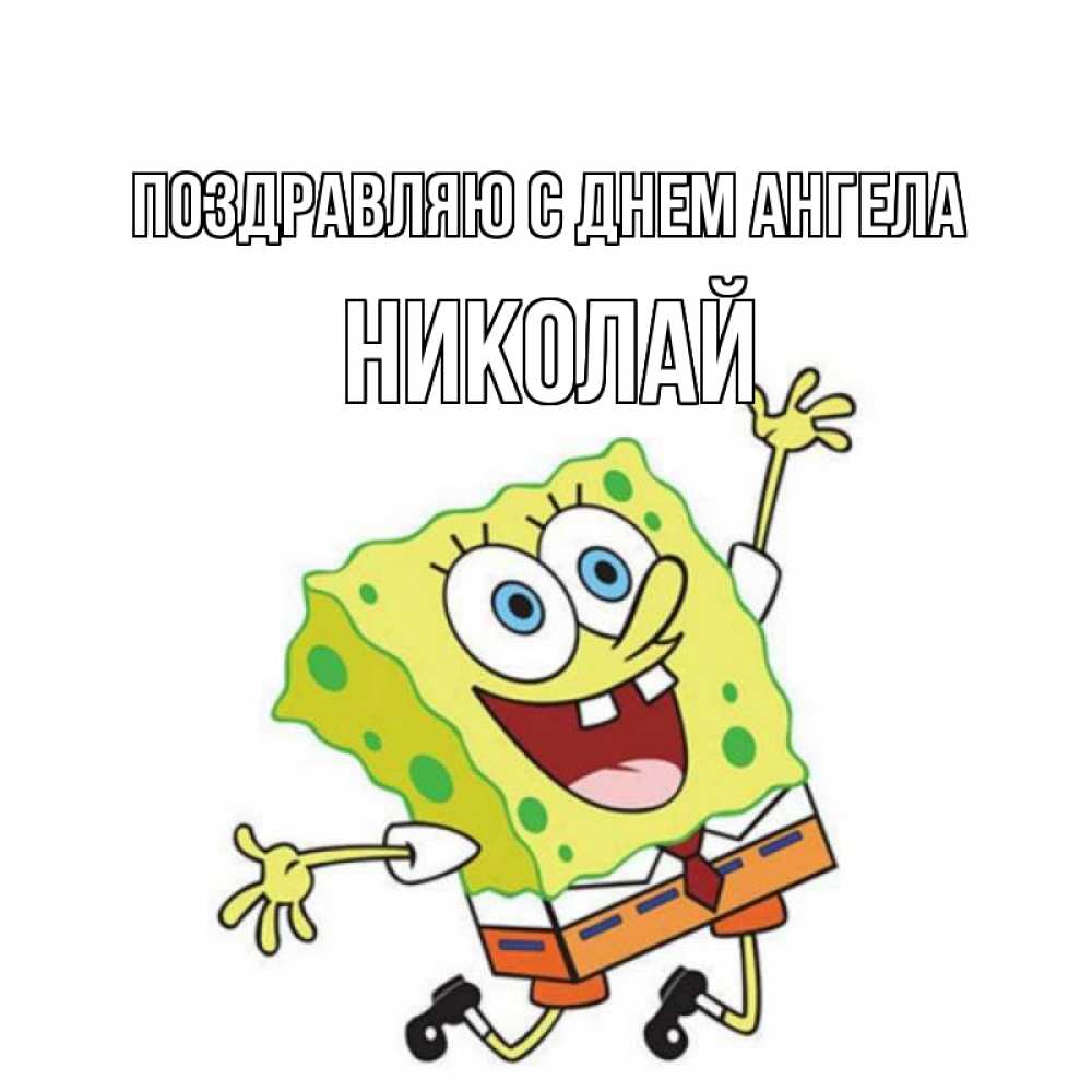 Открытка Поздравляю с днем Ангела Николай. улыбка у спанч Боба. губка боб