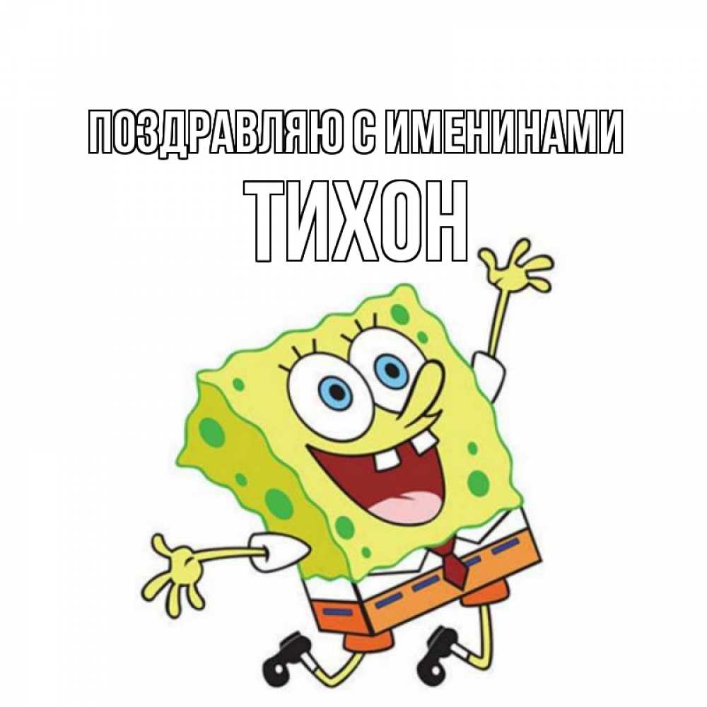 Открытка Поздравляю с именинами Тихон. улыбка у спанч Боба. губка боб
