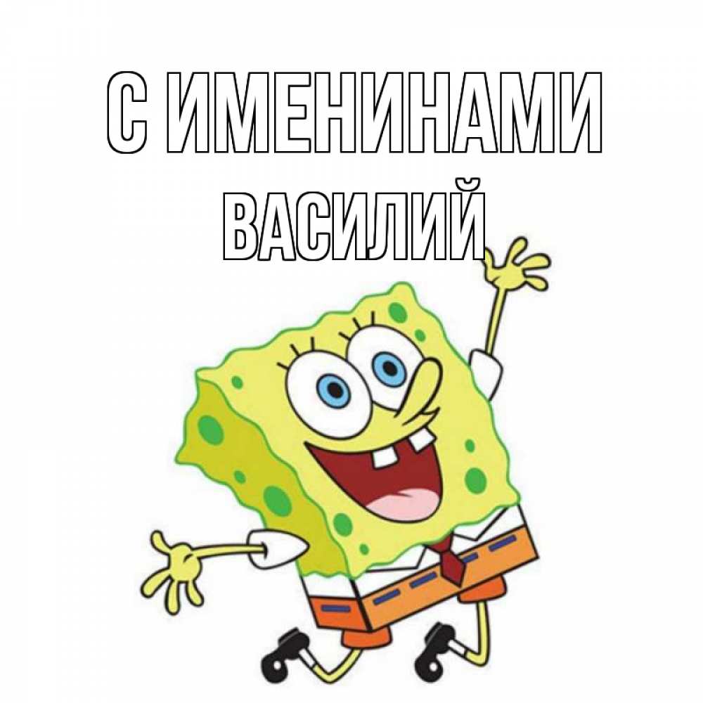 Открытка С именинами Василий. улыбка у спанч Боба. губка боб