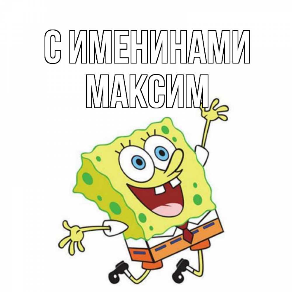 Открытка С именинами Максим. улыбка у спанч Боба. губка боб