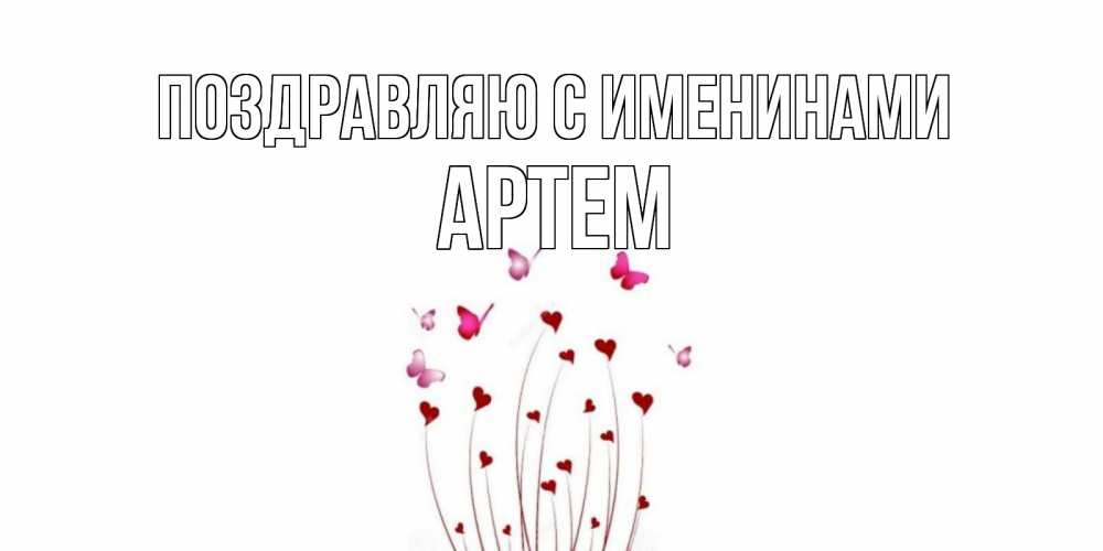 Открытка Поздравляю с именинами Артем. красные бабочки. бабо
