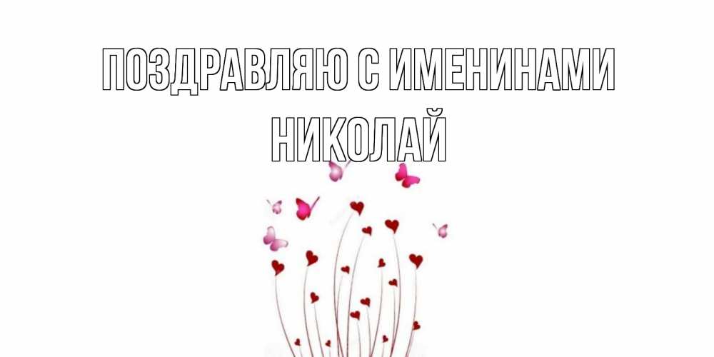 Открытка Поздравляю с именинами Николай. красные бабочки. бабо