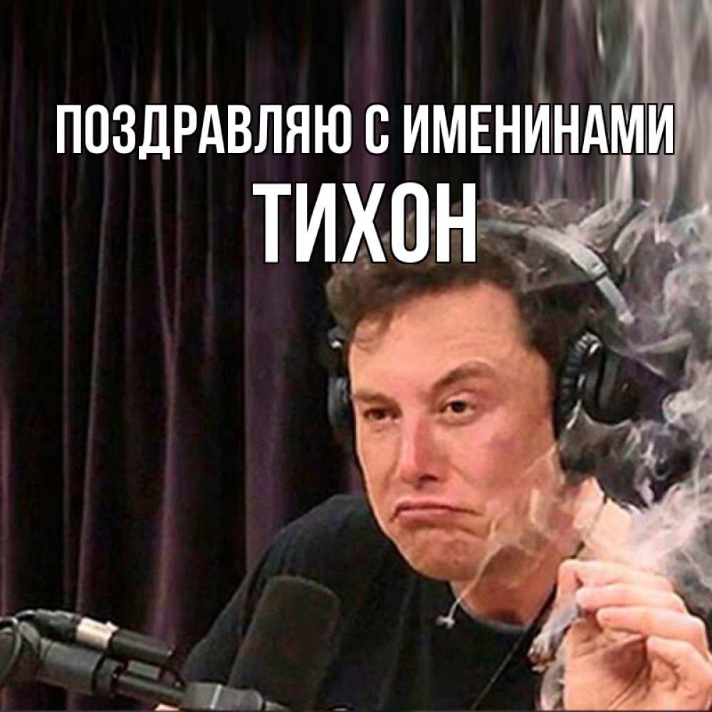 Открытка Поздравляю с именинами Тихон. С днем рождения от Илона Маска. МЕМ