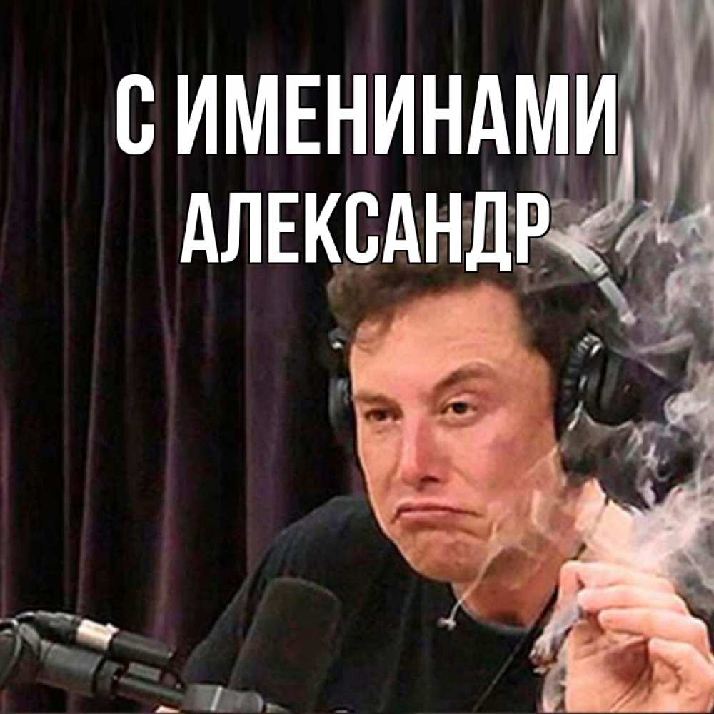 Открытка С именинами Александр. С днем рождения от Илона Маска. МЕМ