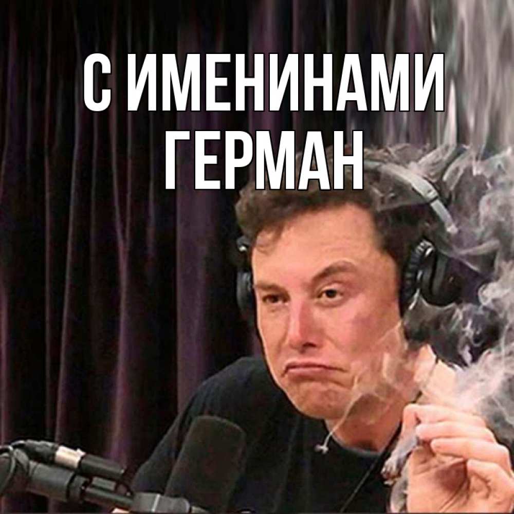 Открытка С именинами Герман. С днем рождения от Илона Маска. МЕМ