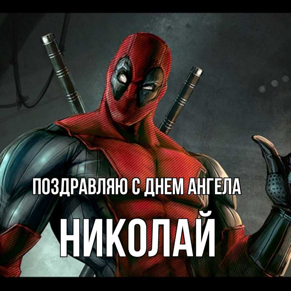 Открытка Поздравляю с днем Ангела Николай. дедпул из коммиксов. марвел супергерои