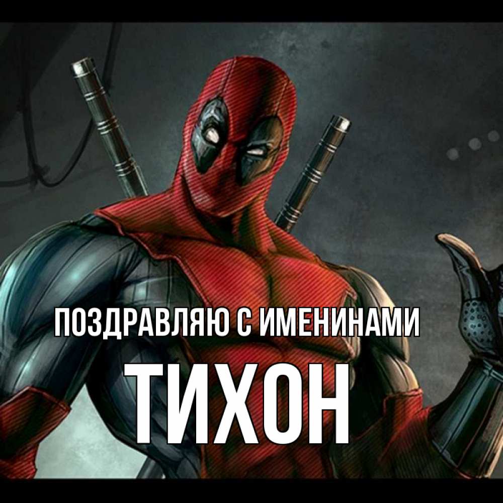 Открытка Поздравляю с именинами Тихон. дедпул из коммиксов. марвел супергерои