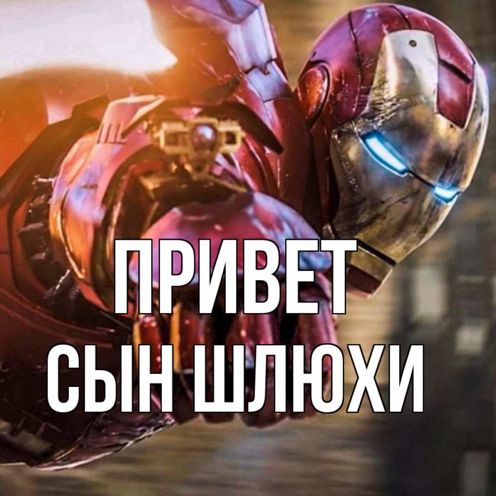 Открытка Привет Сын шлюхи. железный человек. марвел супергерои в костюме