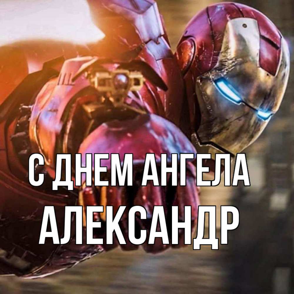 Открытка С днем Ангела Александр. железный человек. марвел супергерои в костюме
