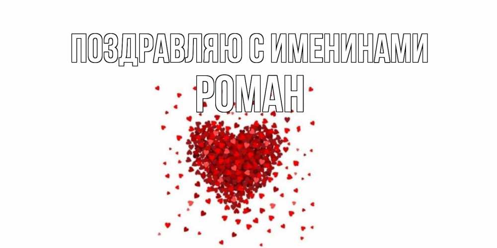 Открытка Поздравляю с именинами Роман. сердце из сердечек. сердце