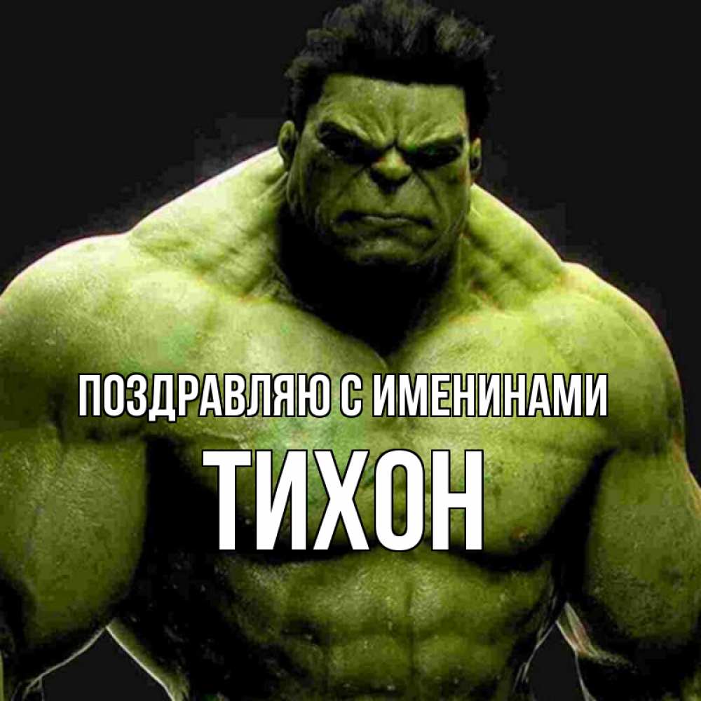 Открытка Поздравляю с именинами Тихон. Халк. зеленый супергерой марвел