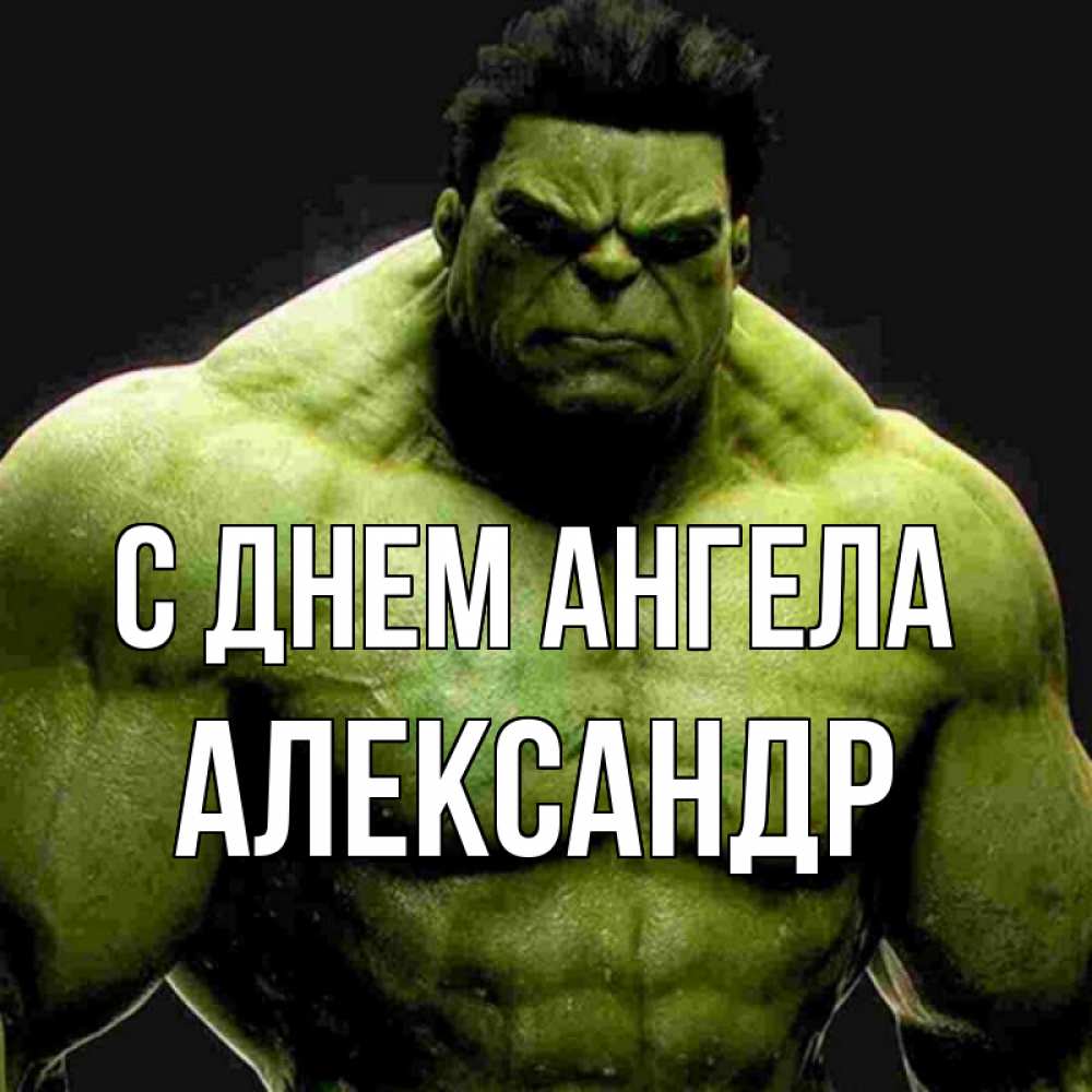 Открытка С днем Ангела Александр. Халк. зеленый супергерой марвел