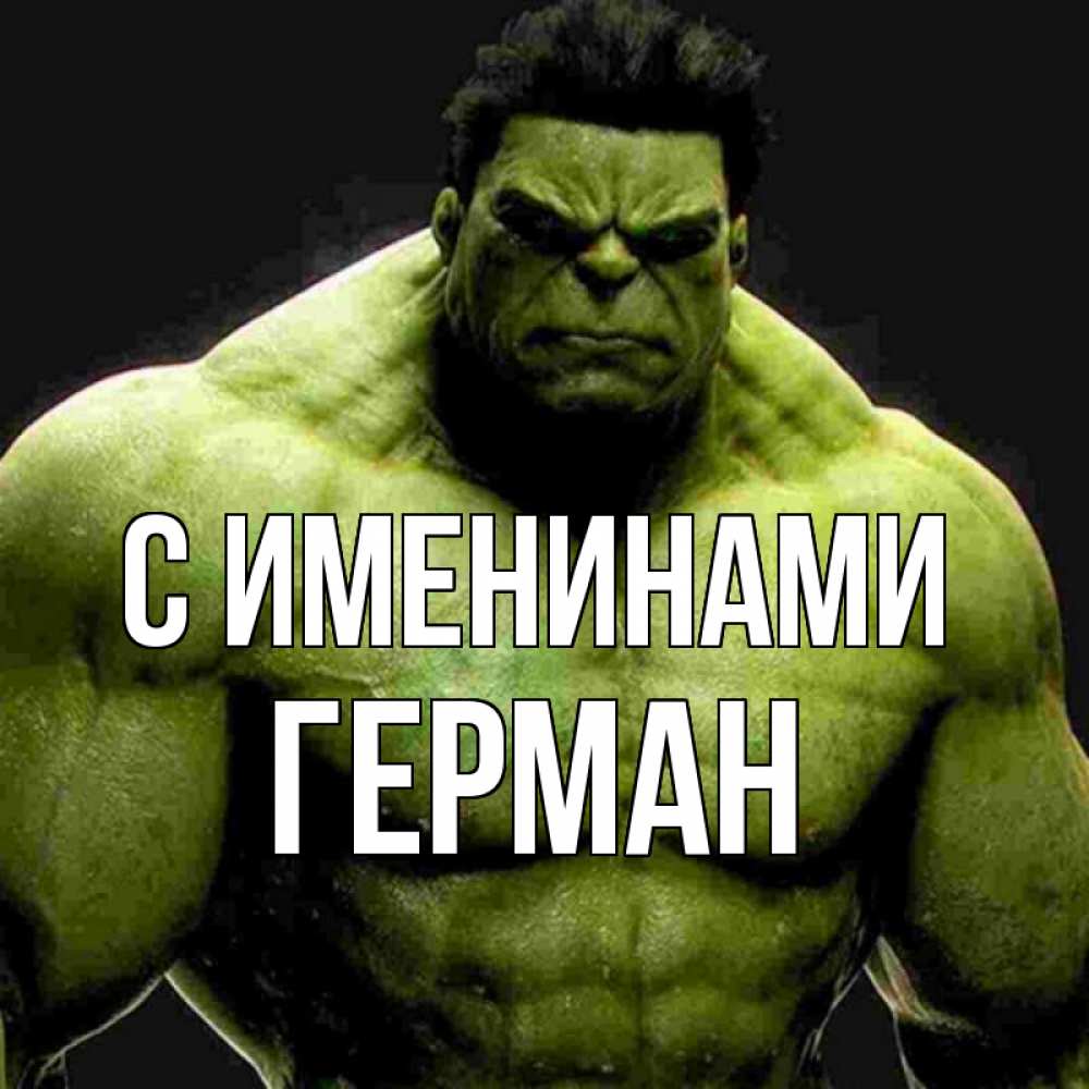 Открытка С именинами Герман. Халк. зеленый супергерой марвел