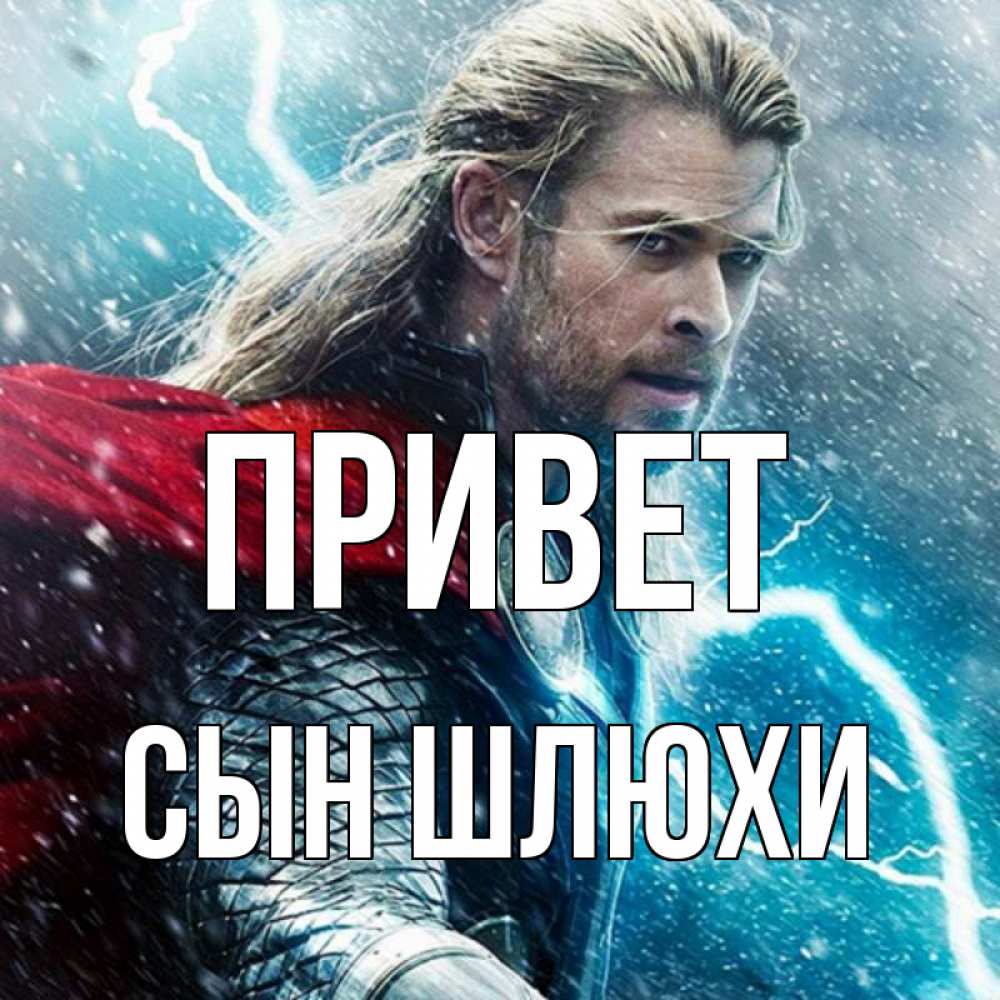 Открытка Привет Сын шлюхи. тор среди молний. марвел боги