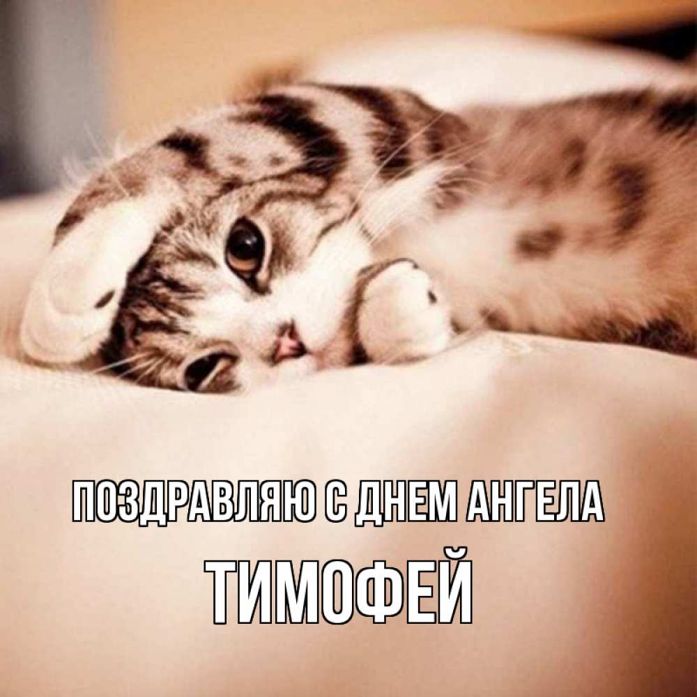 Открытка Поздравляю с днем Ангела Тимофей. Милый кот засыпает. сладких снов с животными