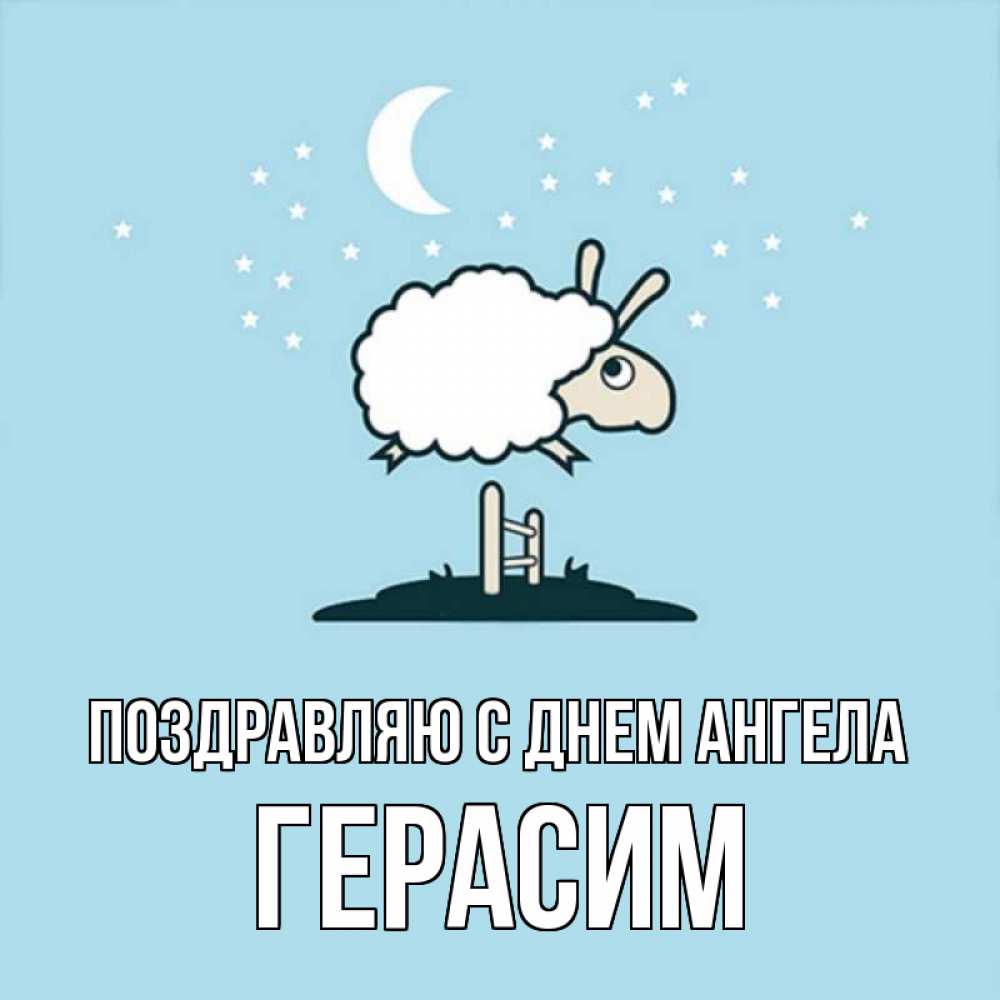 Открытка Поздравляю с днем Ангела Герасим. Барашек желает спокойной ночи. с животными сладких сноведений