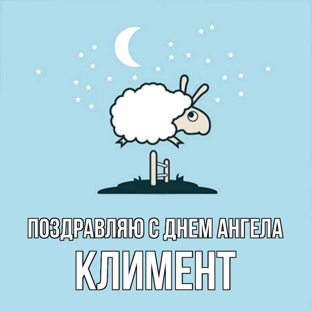 Открытка Поздравляю с днем Ангела Климент. Барашек желает спокойной ночи. с животными сладких сноведений