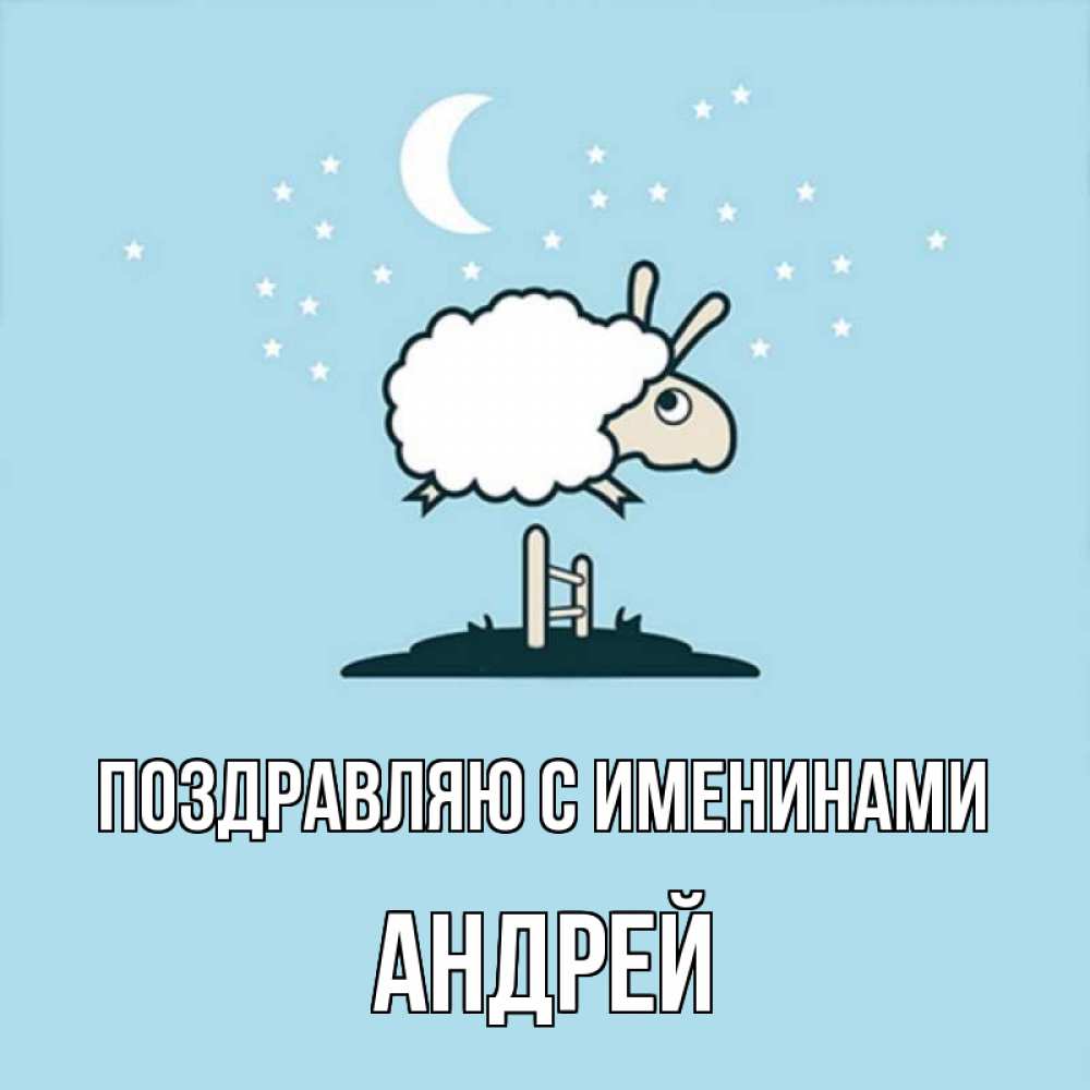 Открытка Поздравляю с именинами Андрей. Барашек желает спокойной ночи. с животными сладких сноведений