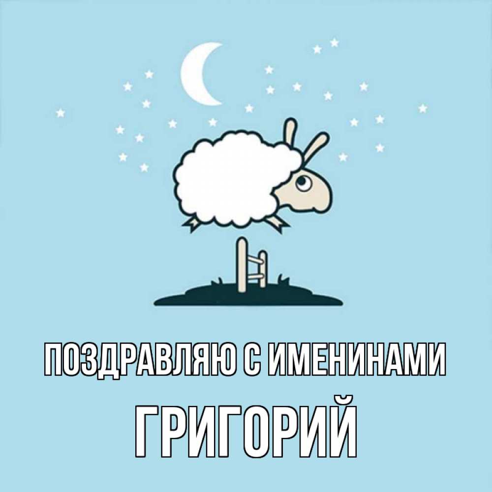 Открытка Поздравляю с именинами Григорий. Барашек желает спокойной ночи. с животными сладких сноведений