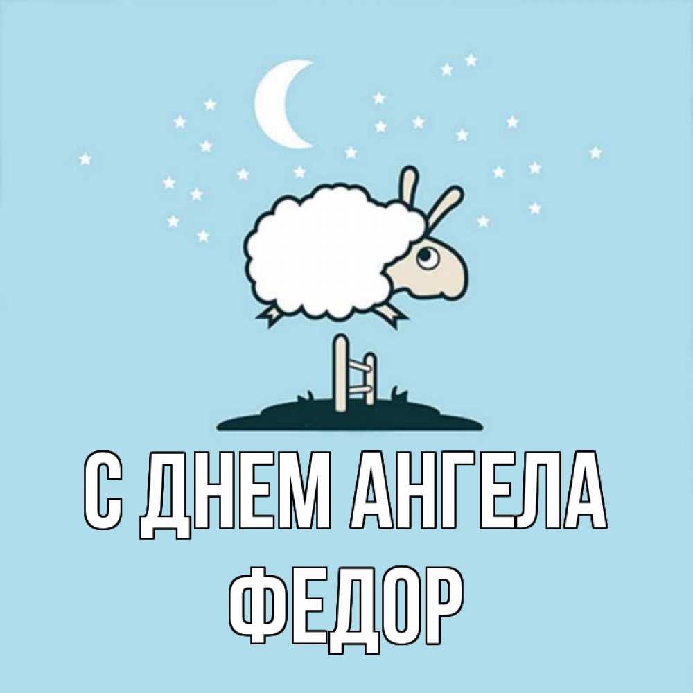 Открытка С днем Ангела Федор. Барашек желает спокойной ночи. с животными сладких сноведений