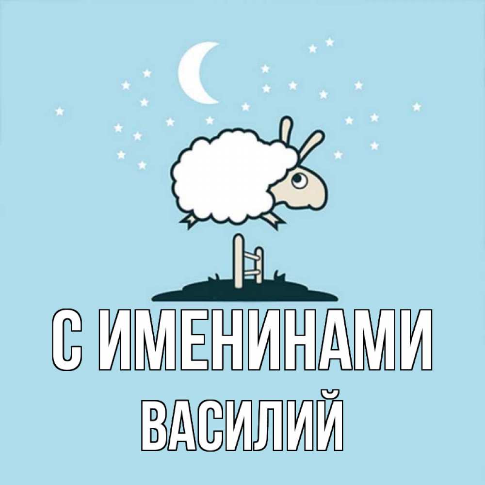 Открытка С именинами Василий. Барашек желает спокойной ночи. с животными сладких сноведений