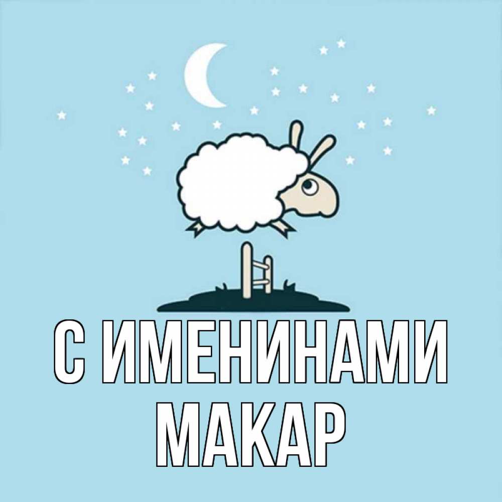 Открытка С именинами Макар. Барашек желает спокойной ночи. с животными сладких сноведений