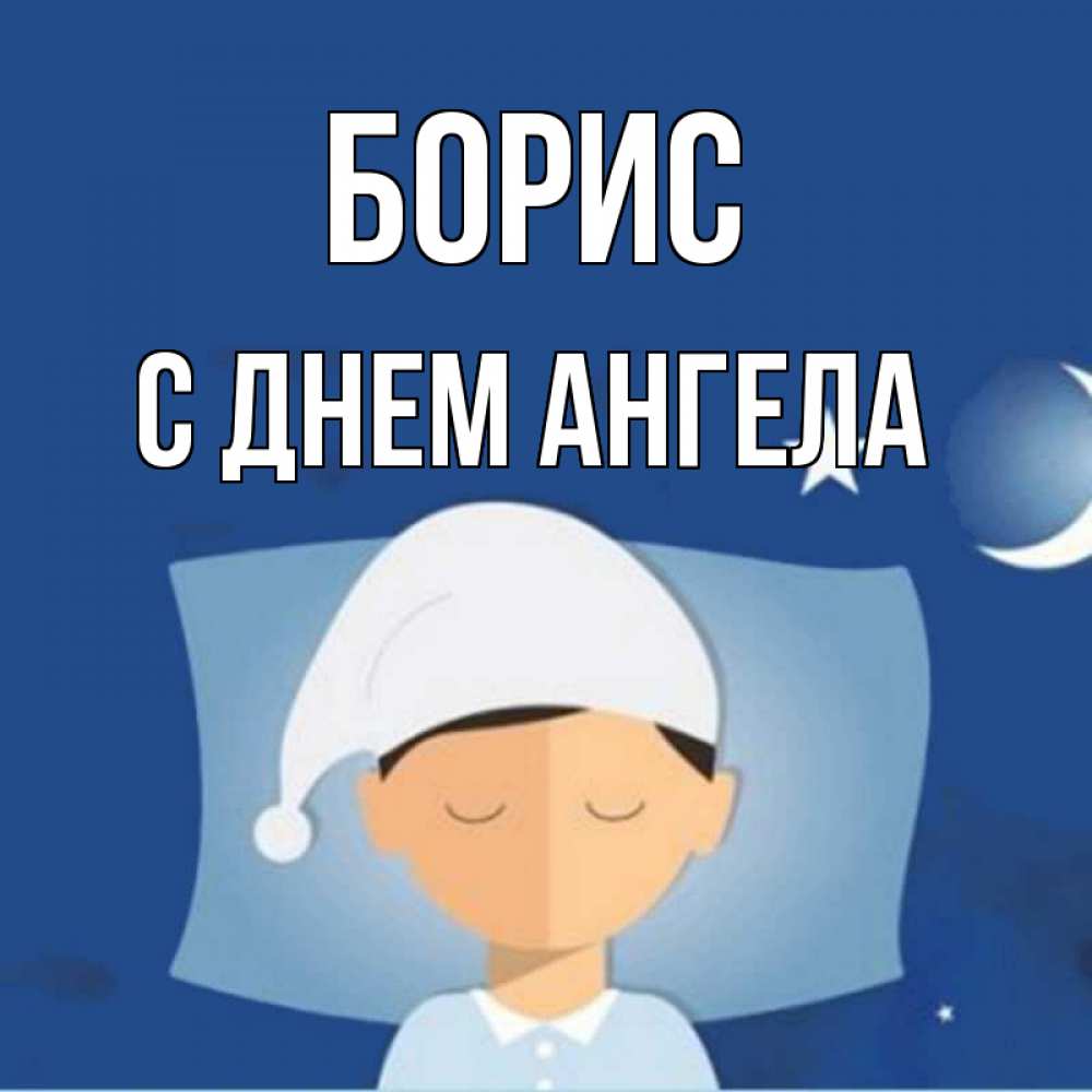Открытка Борис С днем ангела. человек в пижаме ложится спать. подушка и шапочка