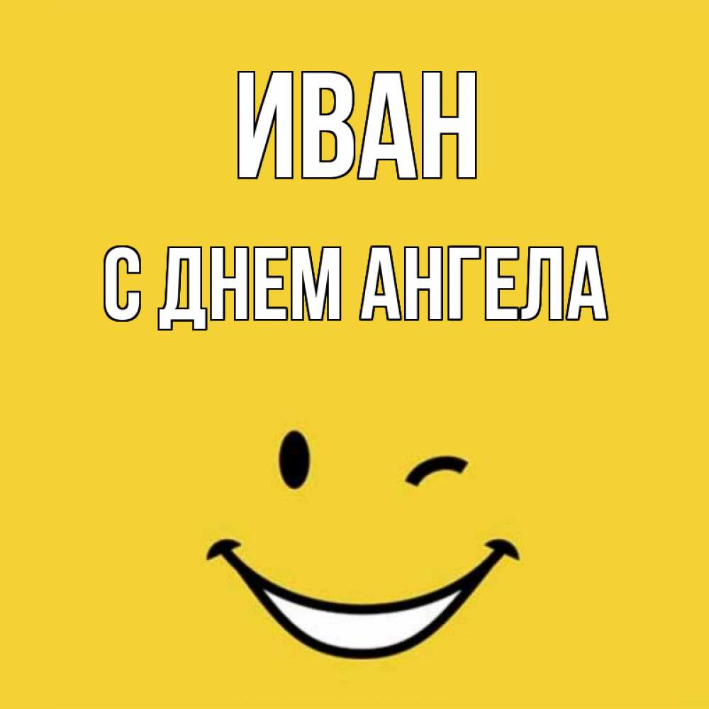 Открытка Иван С днем ангела. Смайл улыбается и подмигивает. оранжевый фон