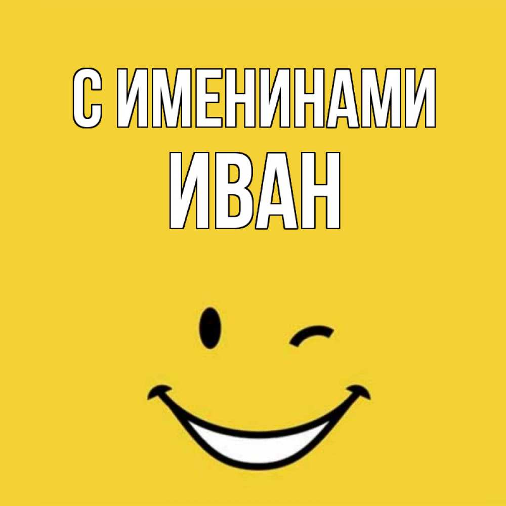 Открытка С именинами Иван. Смайл улыбается и подмигивает. оранжевый фон