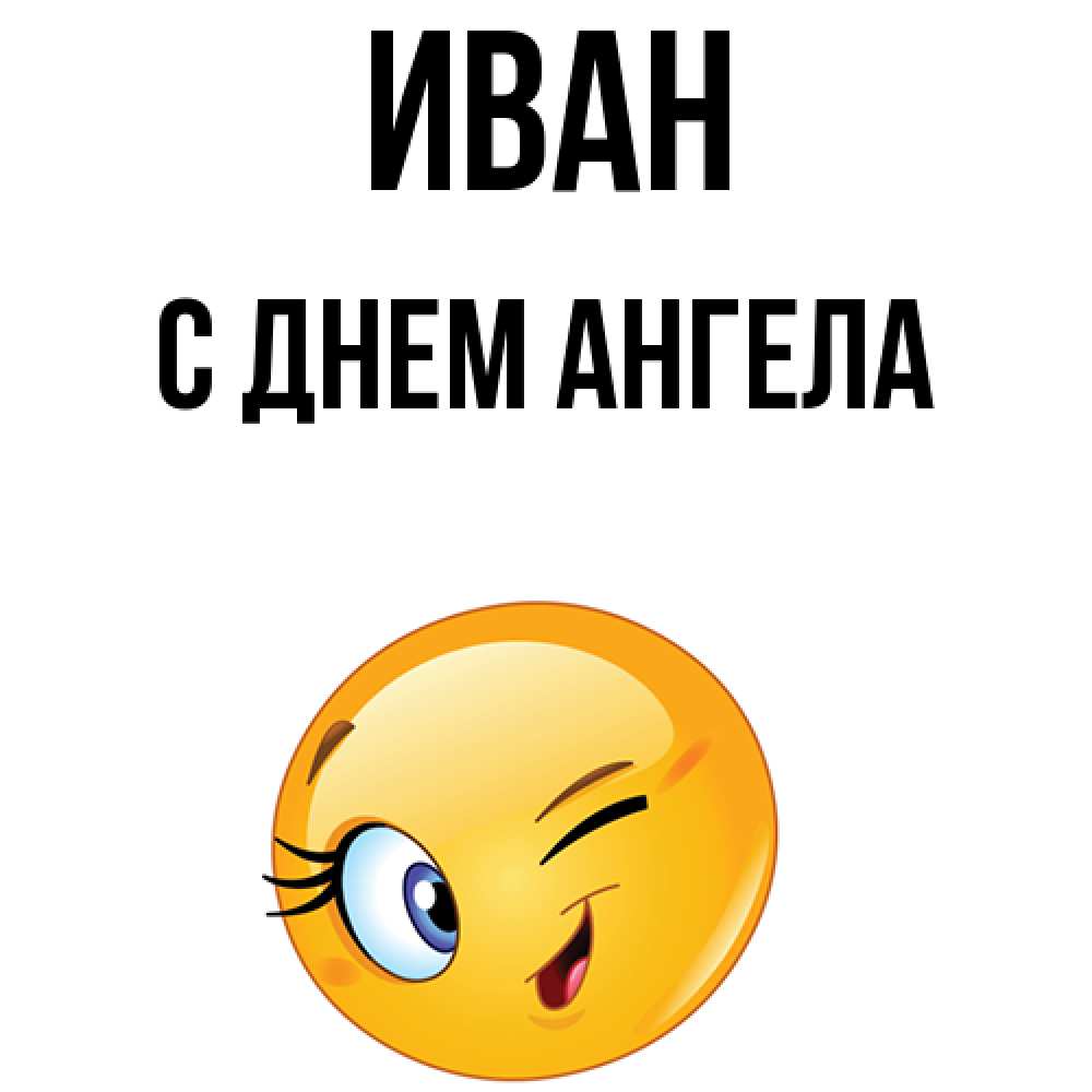 Открытка Иван С днем ангела. Круглый смайл подмигивает и улыбается. хорошее настроение
