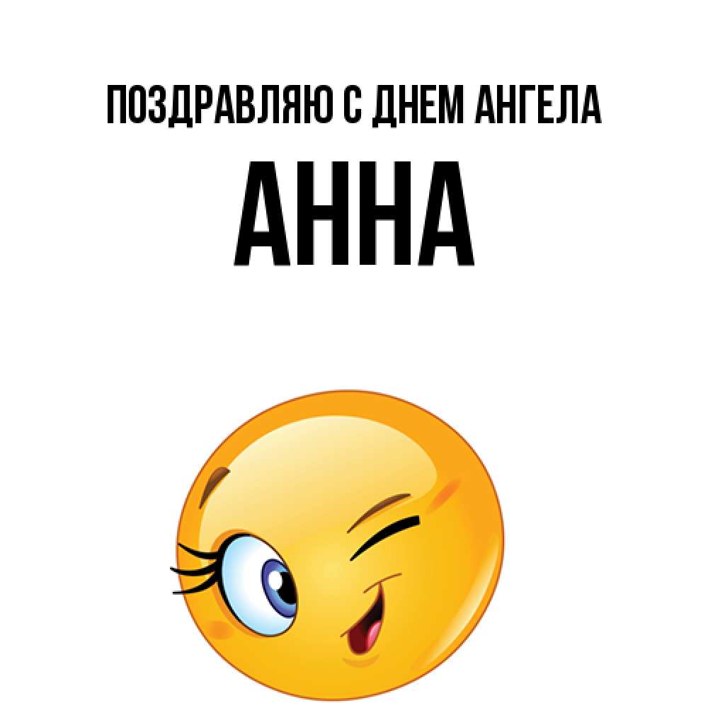 Открытка Поздравляю с днем Ангела Анна. Круглый смайл подмигивает и улыбается. хорошее настроение