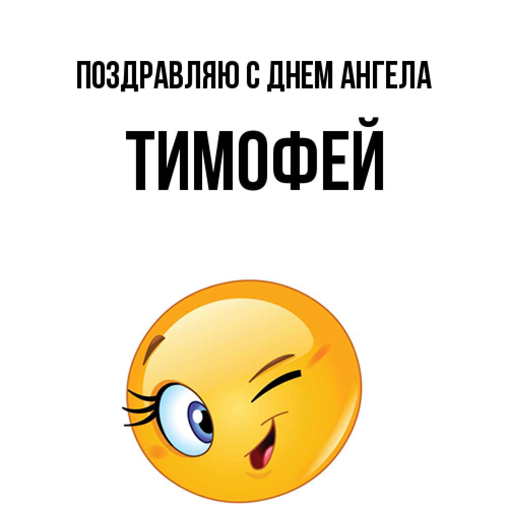Открытка Поздравляю с днем Ангела Тимофей. Круглый смайл подмигивает и улыбается. хорошее настроение