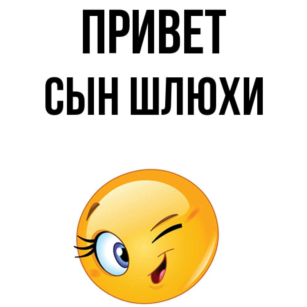 Открытка Привет Сын шлюхи. Круглый смайл подмигивает и улыбается. хорошее настроение