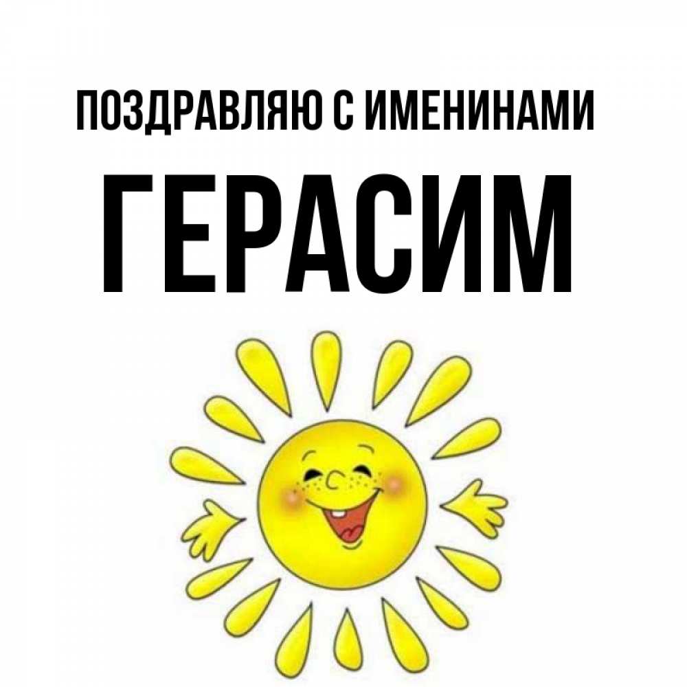 Открытка Поздравляю с именинами Герасим. Солнце светит и хочет обниматься. улыбка