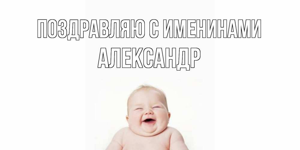 Открытка Поздравляю с именинами Александр. ребенок смеется. малыш с улыбкой