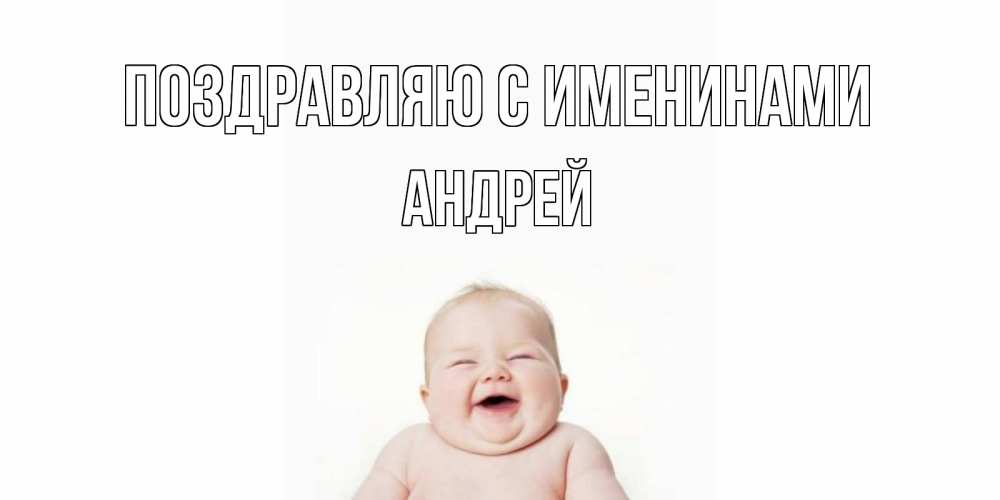 Открытка Поздравляю с именинами Андрей. ребенок смеется. малыш с улыбкой