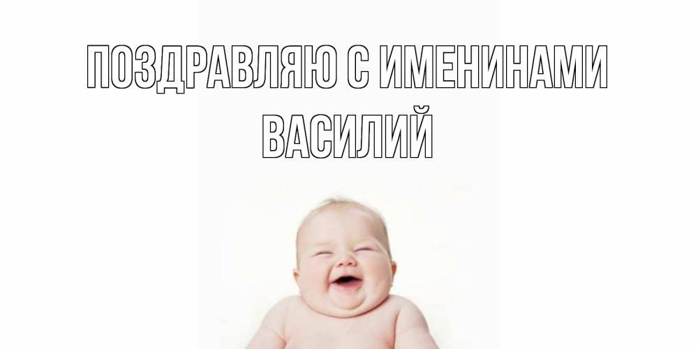 Открытка Поздравляю с именинами Василий. ребенок смеется. малыш с улыбкой