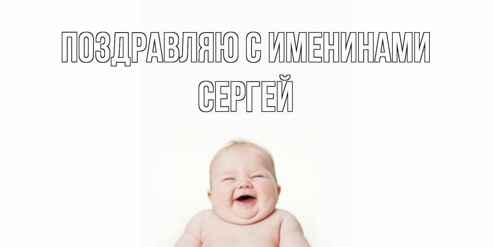 Открытка Поздравляю с именинами Сергей. ребенок смеется. малыш с улыбкой