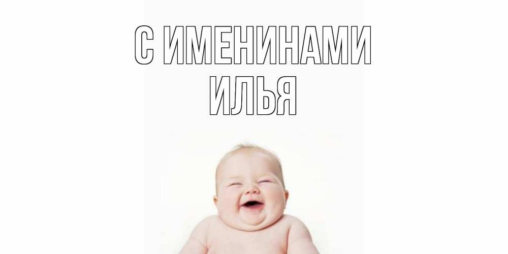 Открытка С именинами Илья. ребенок смеется. малыш с улыбкой