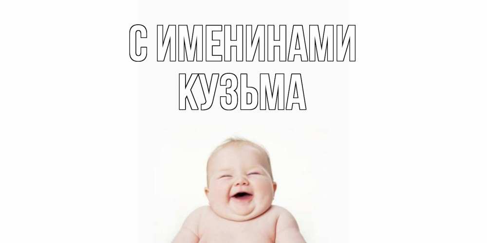 Открытка С именинами Кузьма. ребенок смеется. малыш с улыбкой