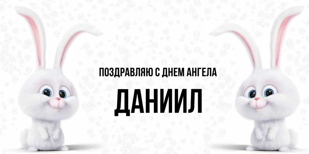 Открытка Поздравляю с днем Ангела Даниил. зайчики позитив. кролики с длинными ушками