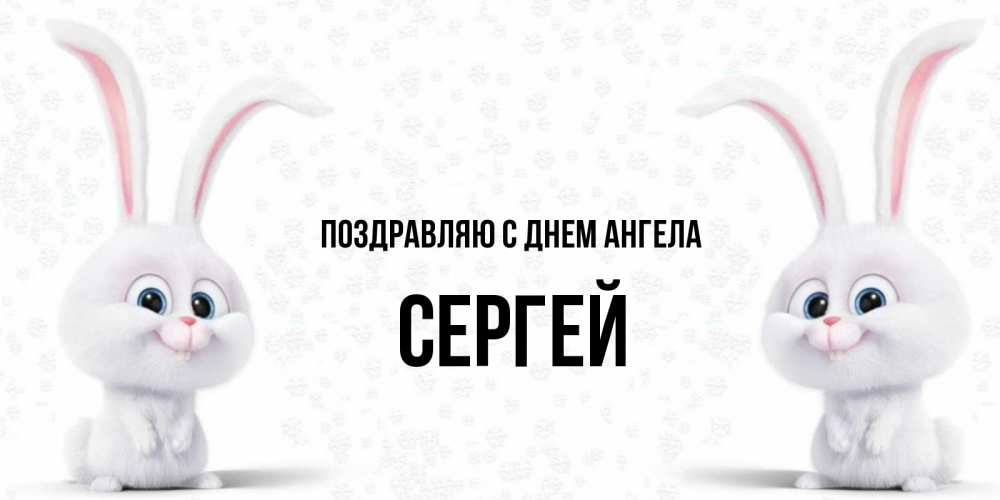 Открытка Поздравляю с днем Ангела Сергей. зайчики позитив. кролики с длинными ушками
