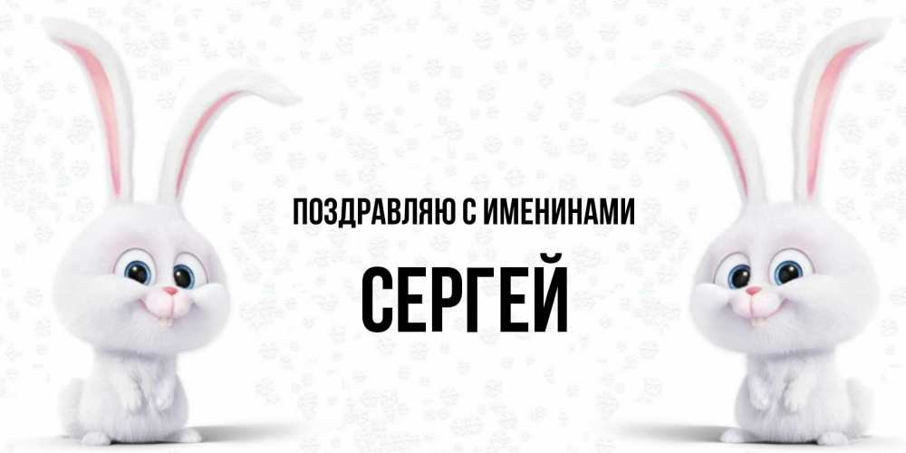Открытка Поздравляю с именинами Сергей. зайчики позитив. кролики с длинными ушками