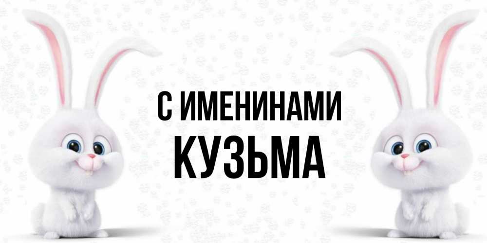 Открытка С именинами Кузьма. зайчики позитив. кролики с длинными ушками