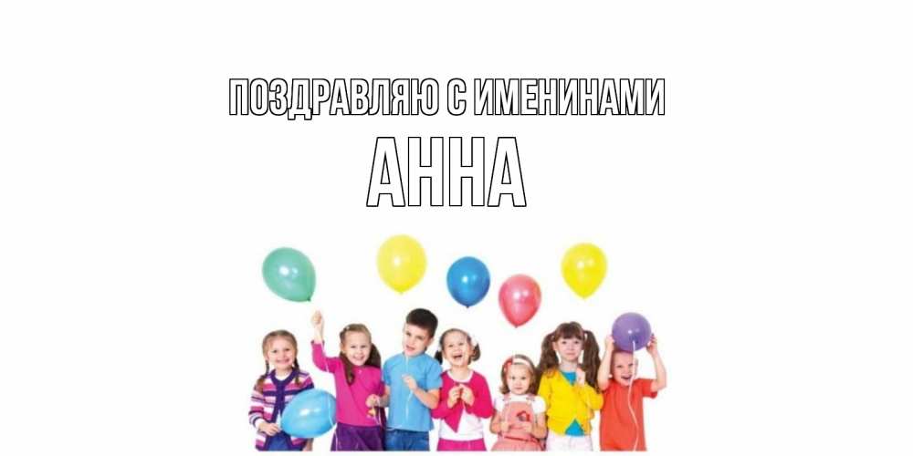 Открытка Поздравляю с именинами Анна. шарики и дети. веселье