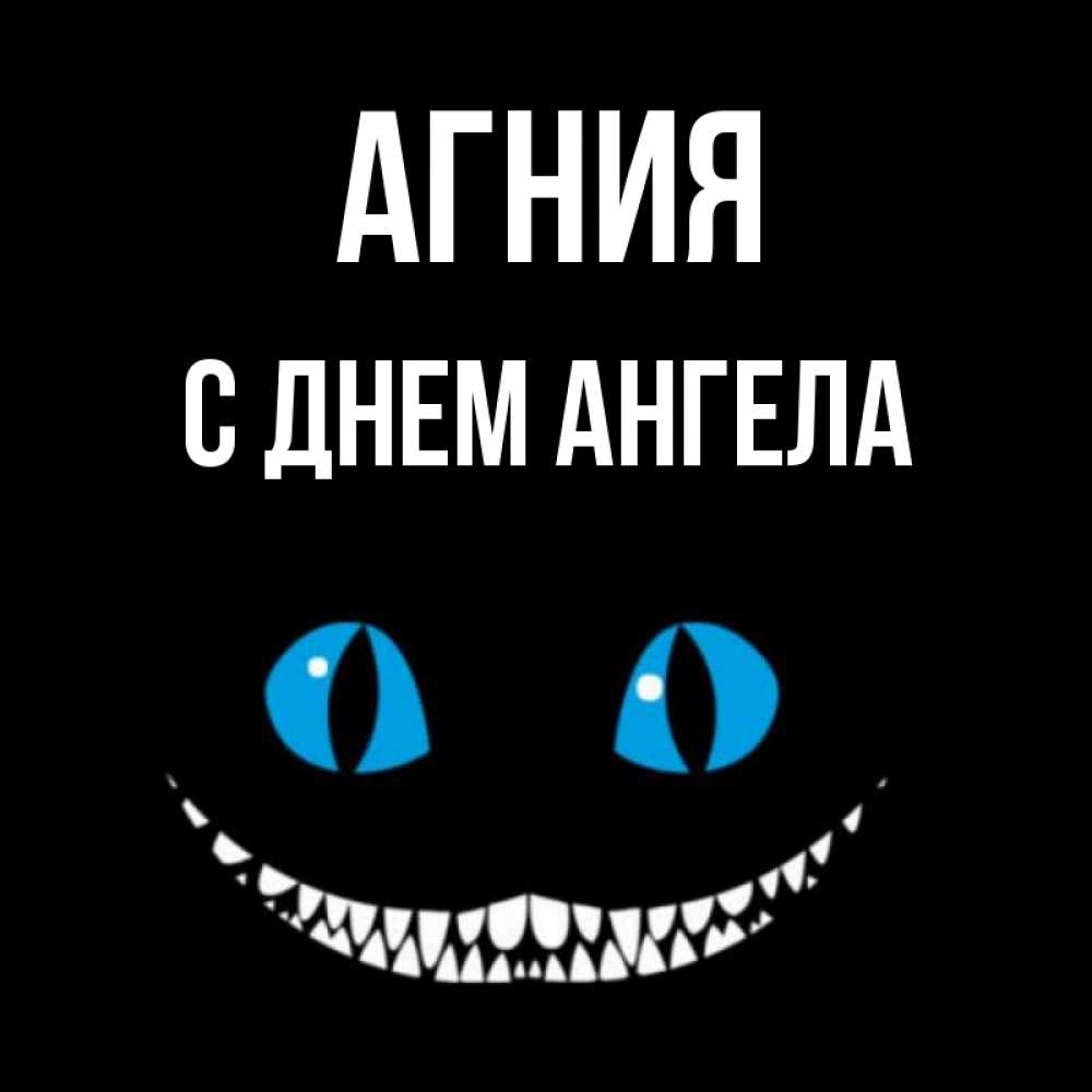 Открытка Агния С днем ангела. чеширский кот и утречко. голубые глаза и зубки
